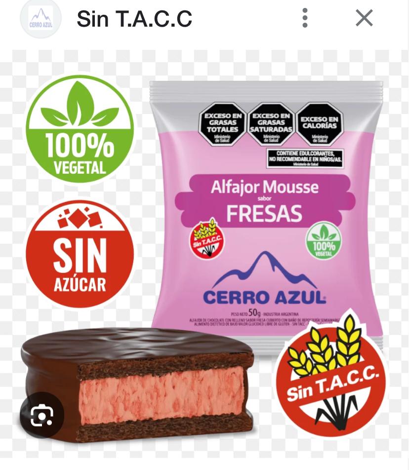 Etiqueta: Alfajor Mousse fresas bañado choco. x 50 gr SIN TACC/ VEGANO/ SIN AZUCAR | CERRO AZUL |